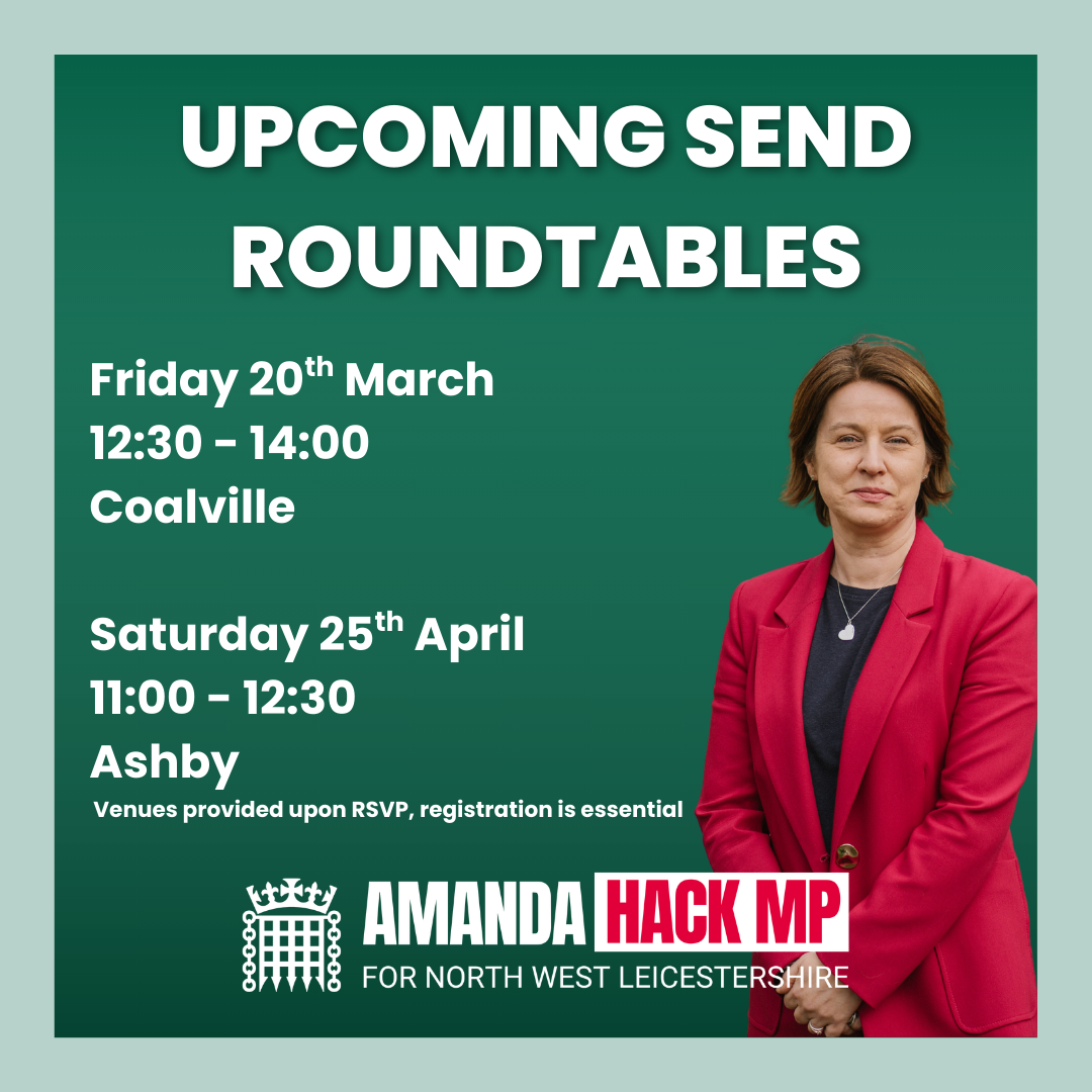 Following the Government’s recent announcement of proposals for the SEND system, which are now open for consultation, I’ll be holding two further roundtables in the coming weeks to hear your views. Your feedback will help inform my full response to the consultation.